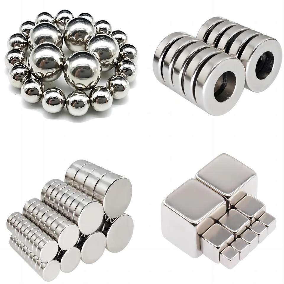 Imanes industriales de neodimio de tierras raras Ndfeb de alto rendimiento personalizados materiales magnéticos de bloque cuadrado de cubo de bola de níquel permanente
