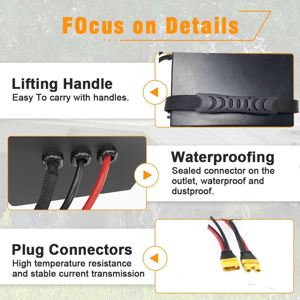 Batería de iones de litio Lipo personalizada de alta potencia 44.4V 29.6V 74V 60Ah 63Ah 65Ah 78Ah 12S1P 12S2P 12S3P 8S1P 8S2P para UGV