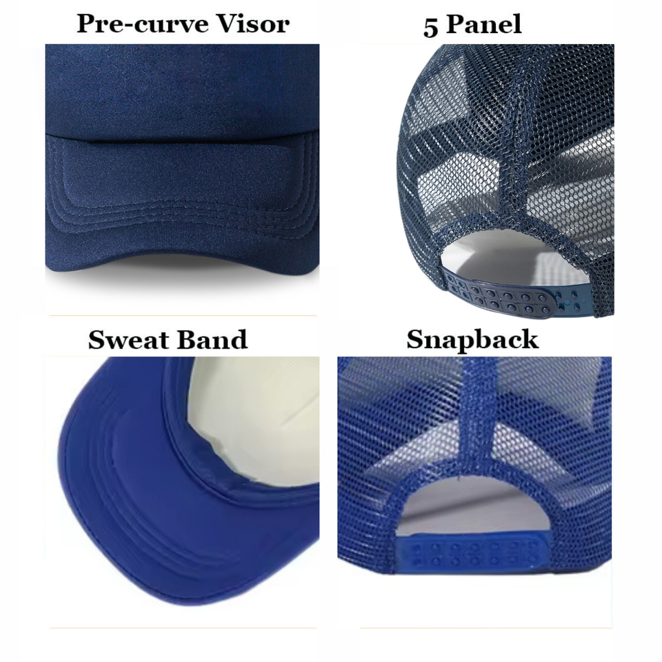 Gorra Trucker de Espuma Lisa de Perfil Medio-Alto Personalizada, Gorra Trucker de Malla Profesional en Blanco para Impresión a Granel con Visera para Hombre