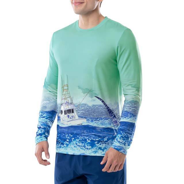 Camisas de pesca de sublimación transpirables de servicio OEM de rendimiento de protección solar UV de manga larga de poliéster 100% de alta calidad personalizadas