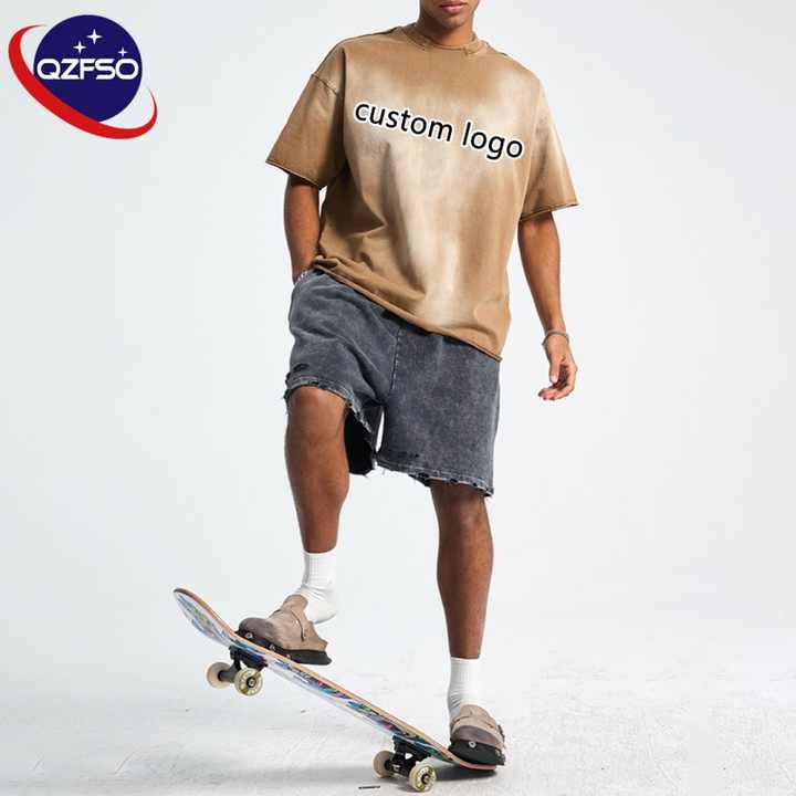 Personalizado de alta calidad 230gsm Color Gradual Tee Hombres Vintage Oversize algodón camiseta Dtg impresión gráfica patrón ácido lavado camiseta