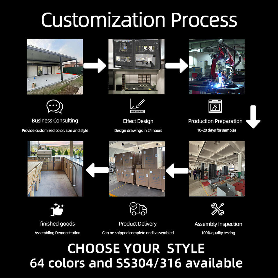 Gabinetes de cocina de acero inoxidable personalizados de alta calidad 304 antioxidantes personalizados para exteriores con bisagra de grifo para jardines barbacoa comedor
