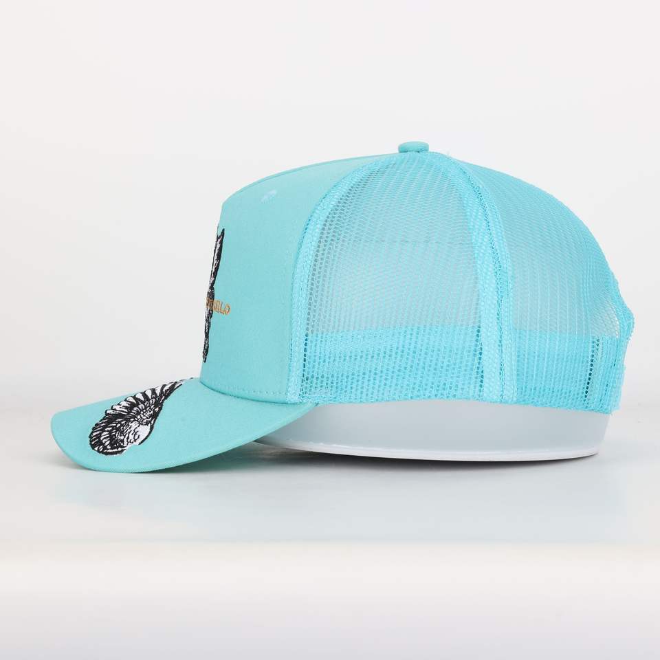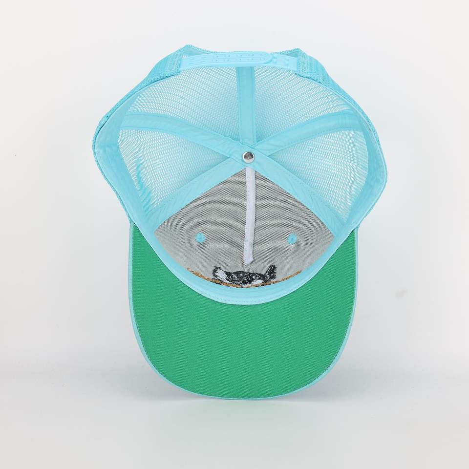Personalizado de alta calidad 5 paneles 100% algodón en blanco borde curvo bordado gorras de béisbol Dobby bordado fruta agujero personalizado Logoos