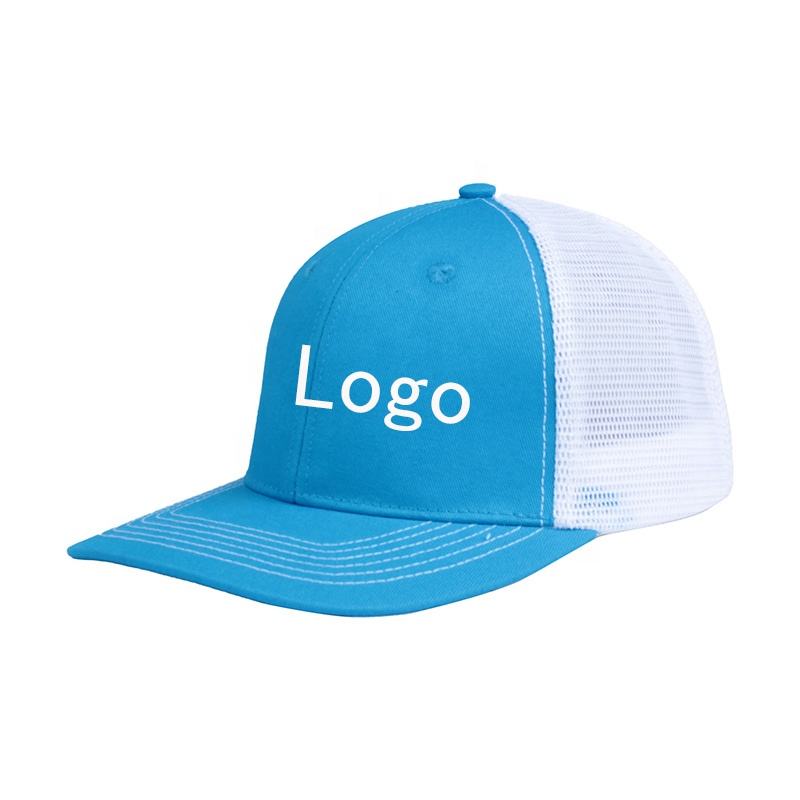 Sombrero de camionero de gamuza azul de 5 paneles de alta calidad personalizado gorras de malla Lisa Snap Back 3D logotipo bordado moda ciclismo playa al aire libre