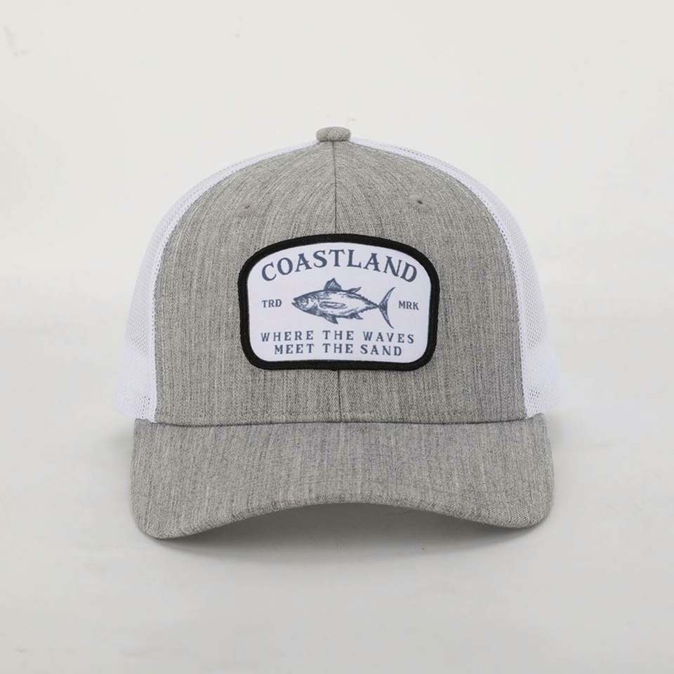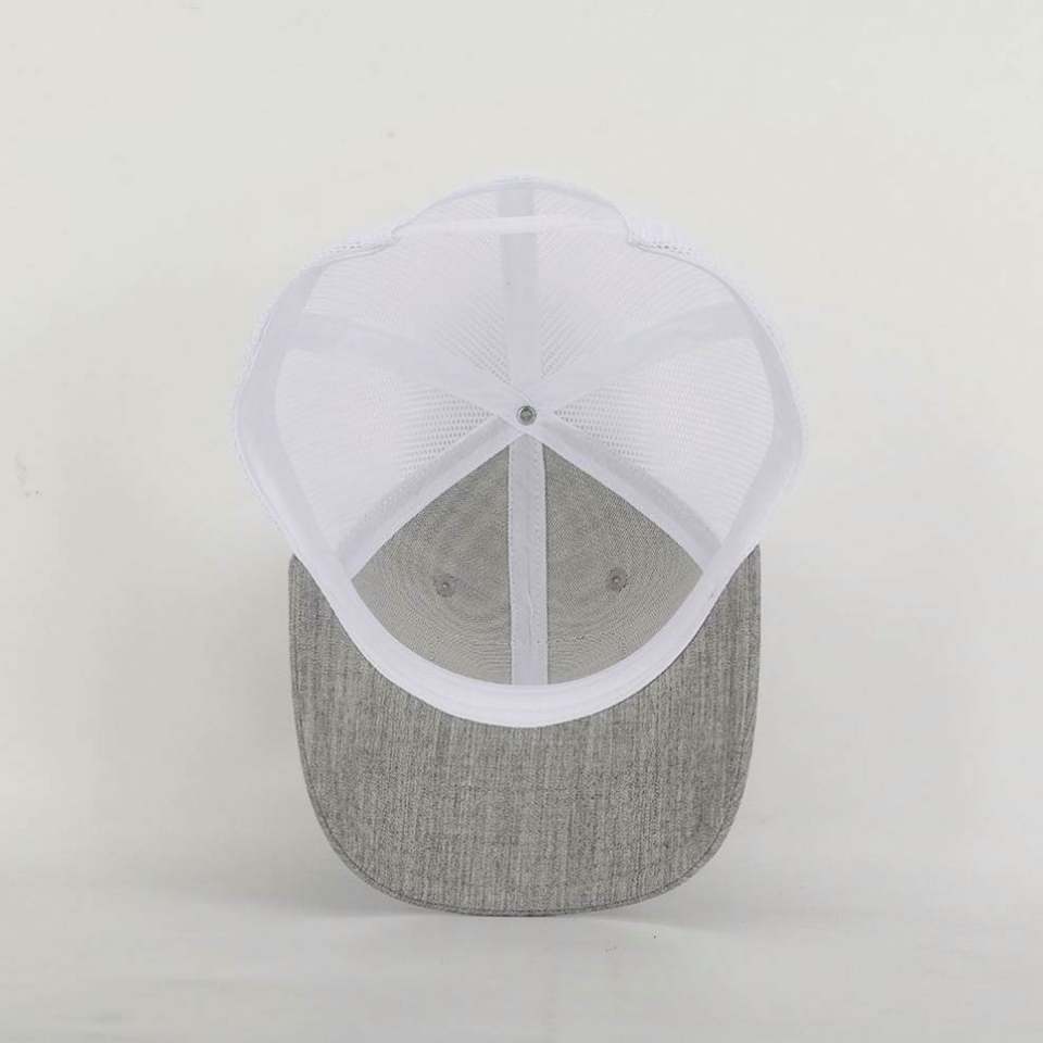 Gorra Trucker de Malla Personalizada de Alta Calidad con 6 Paneles, Clásica, de Poliéster y Algodón, con Logotipo Bordado en Gris Jaspeado, Bajo MOQ, en Venta