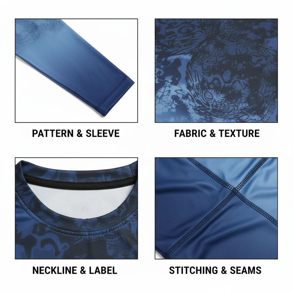Frente, Espalda, Manga izquierda, Manga derecha, Dobladillo inferior, Cuello trasero