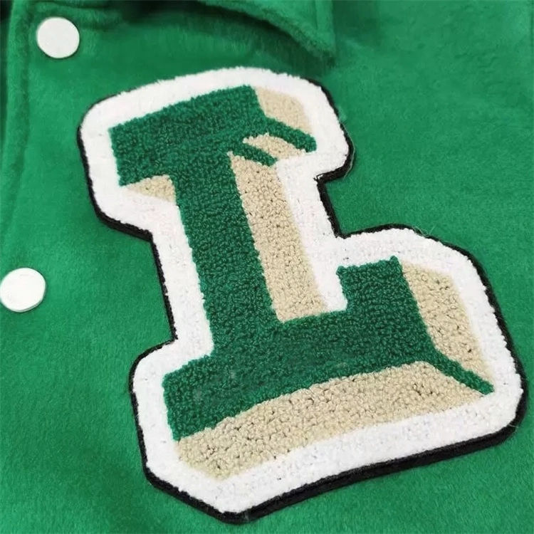 Chaqueta de béisbol personalizada de alta calidad, Parche de chenilla bordado, manga de cuero, chaqueta universitaria Vintage de béisbol Letterman para hombres