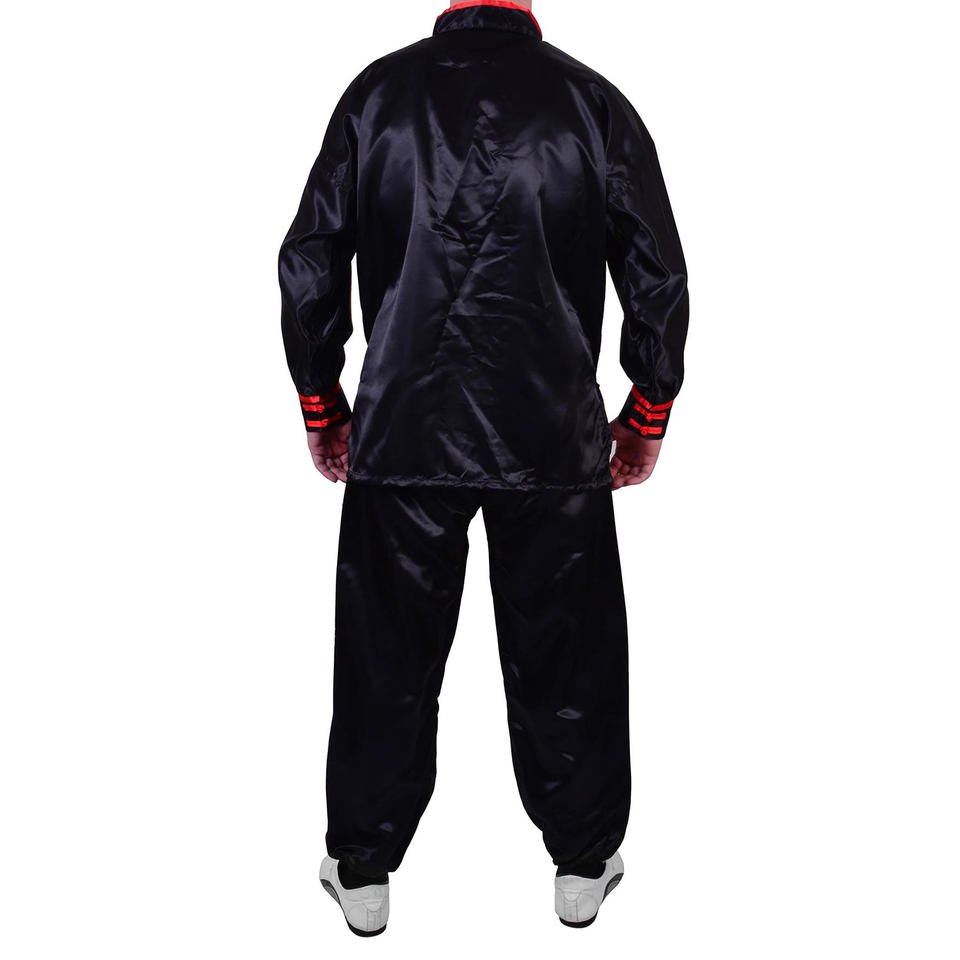Uniforme de Kung-Fu Wushu negro de alta calidad personalizado con Tubería roja