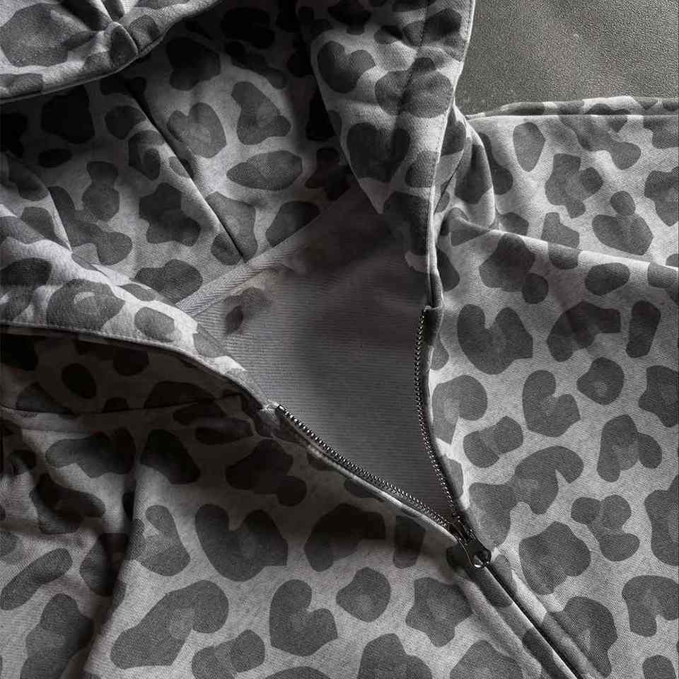 Sudadera con Capucha Personalizada de Alta Calidad, 100% Algodón, 400 g/m², Estampado Gráfico de Leopardo y Guepardo, con Cremallera, para Hombre