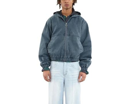 Chaqueta de trabajo con cremallera de lona holgada de algodón 100% lavada personalizada con chaqueta Bomber de invierno vintage con capucha para hombre
