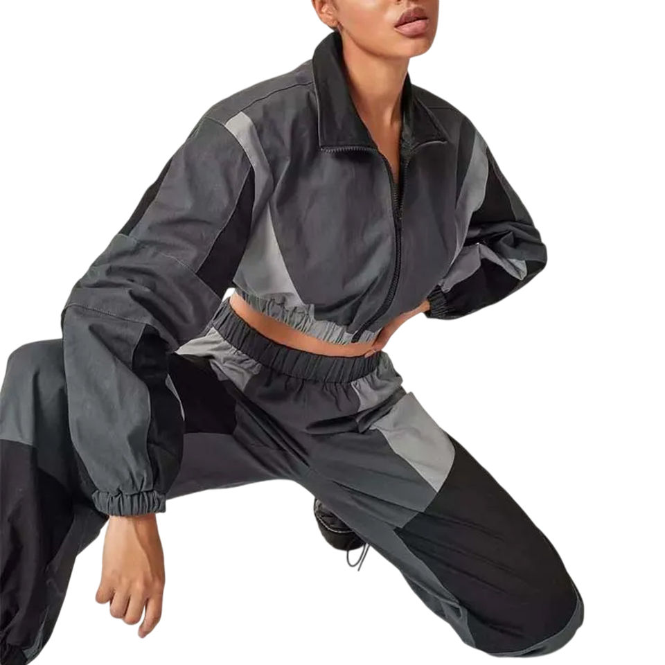 Conjunto cortavientos de chándal de nailon para mujer con media cremallera recortada de alta calidad personalizada 2026