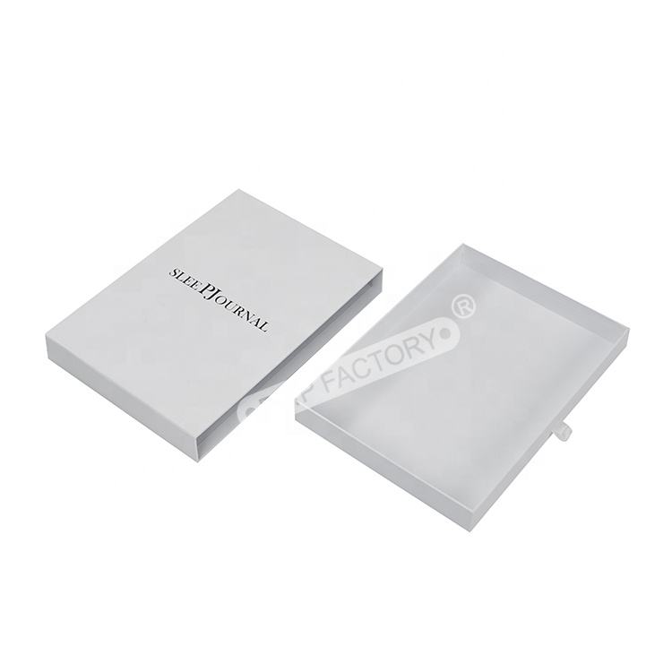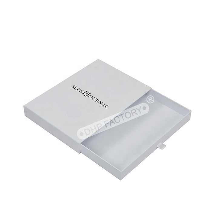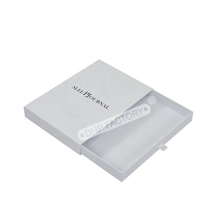 Embalaje personalizado de alta calidad con Logo personalizado, caja deslizante blanca con asa de cinta, pijamas, ropa de noche, túnicas