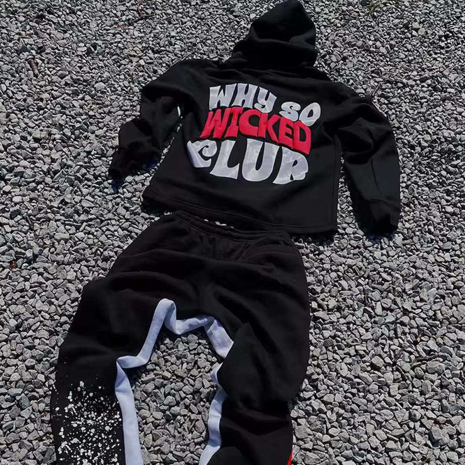 Conjunto de chándal apilado personalizado de alta calidad con estampado abullonado personalizado, chándal acampanado transpirable de algodón/poliéster/LICRA para niños