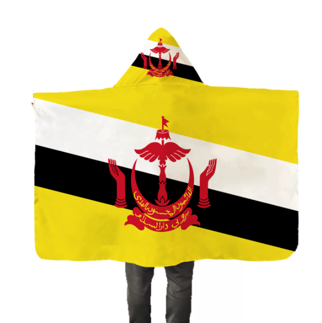 Capa con Capucha de Diseño Personalizado de Alta Calidad con la Bandera Nacional de Brunéi, con Mangas, 90*150cm, Precio Bajo en Promoción
