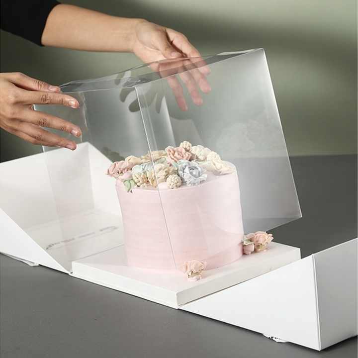 Caja Cuadrada de Pastel para Boda, Decorativa, Transparente, de Lujo, Desechable, de PET y Papel, Personalizada y de Alta Calidad