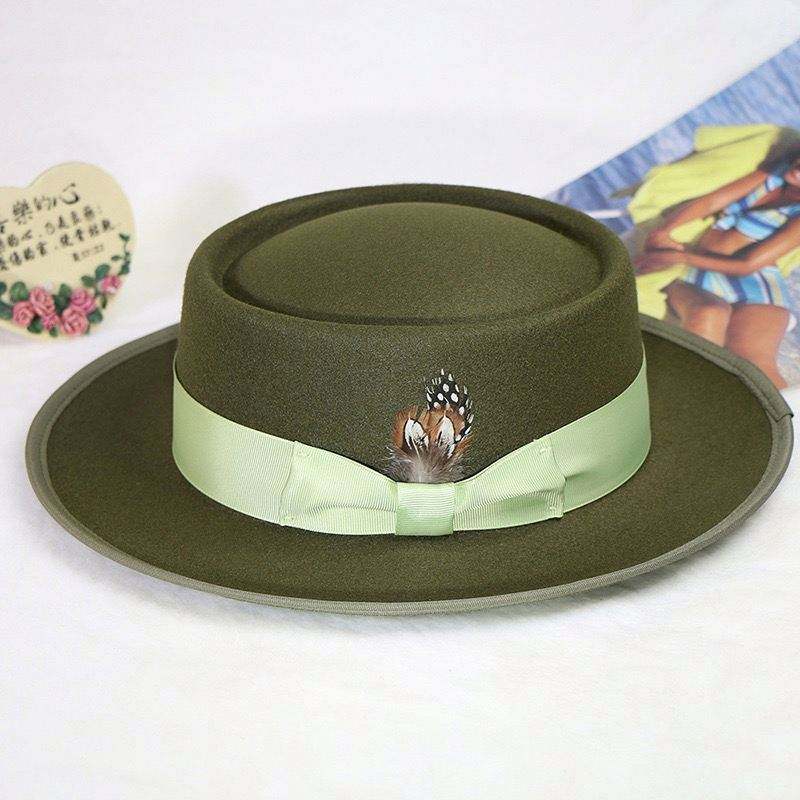 Sombrero Fedora de Lana Sintética de Alta Calidad Personalizado, Sombreros de Moda para Hombre, Gorra Tipo Pork Pie con Corona Telescópica y Forro de Satén con Plumas