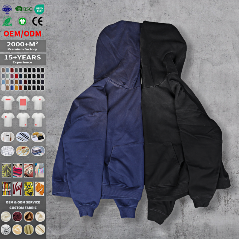 Sudadera con Capucha Personalizada de Alta Calidad, Estilo Vintage Desgastado con Lavado Ácido, Sudadera Corta Rota de Felpa Francesa, Unisex