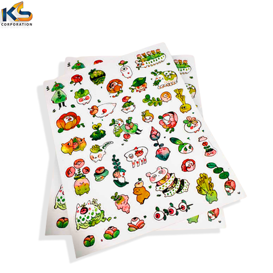 Pegatinas de vinilo impermeables con corte de beso de alta calidad personalizadas, pegatinas coloridas de dibujos animados, pegatina de hoja de corte de beso de vinilo de PVC