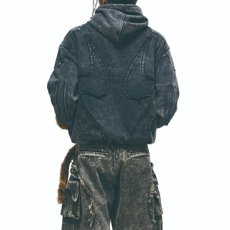 Sudadera con Capucha Personalizada de Alta Calidad, Estilo Holgado, con Apliques de Botones, Estilo Urbano, Vintage, Bordada, Lavada, para Mujer