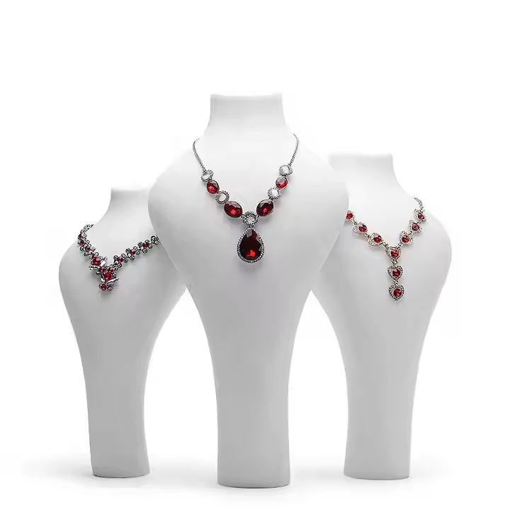 Juego de exhibición de joyería de resina lacada, maniquí personalizado de alta calidad, Exhibidor de pie, accesorios, collar de joyería blanca, busto