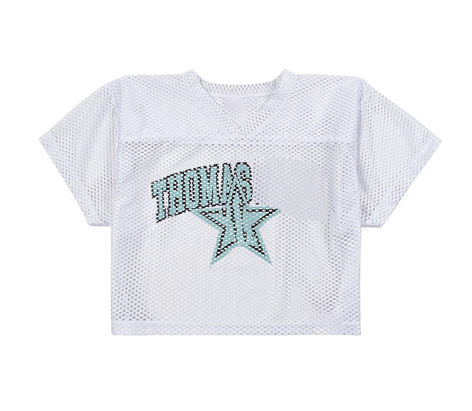 Camiseta deportiva de malla personalizada de alta calidad, fabricante de camisetas de gran tamaño con estampado de béisbol y cuello en V, camiseta recortada de media manga para hombre