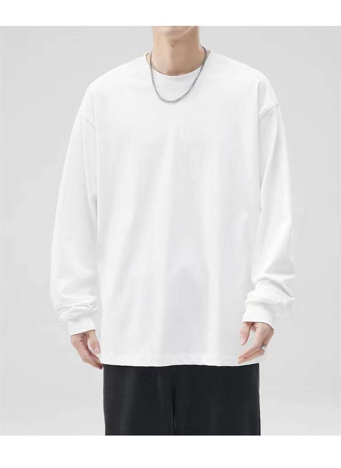 Personalizado de alta calidad de gran tamaño Casual de los hombres 100% de algodón 260 en blanco de peso pesado de Color sólido de cuello redondo camisetas de manga larga para los hombres