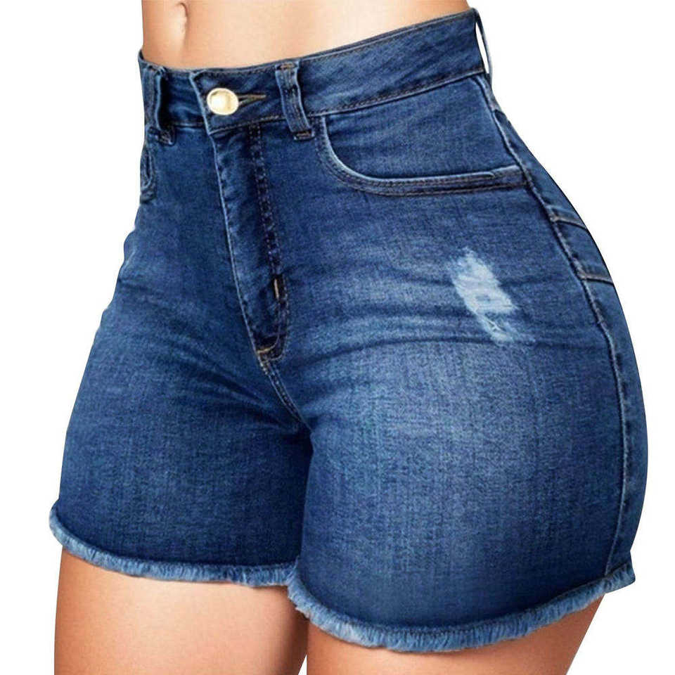 Shorts de Mezclilla Azul Ajustados de Cintura Media Hechos en Pakistán de Alta Calidad Personalizados para Mujer, con Cierre de Cremallera Trasero y 2 Bolsillos, Disponibles para OEM