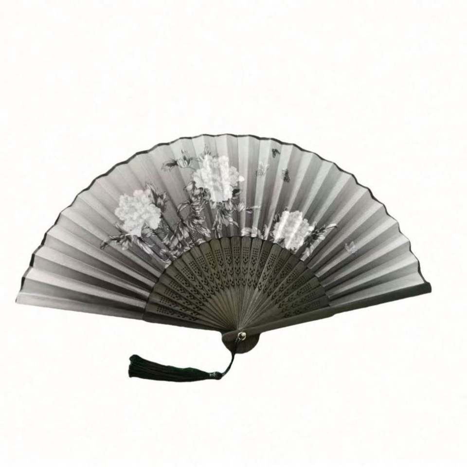 Abanico Plegable de Bambú Negro Personalizado con Logotipo Impreso en Seda de Alta Calidad para Abanicos Impresos