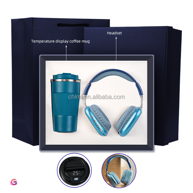 Personalizado de alta calidad promocional comercial trabajo regalo al por mayor taza de café auriculares recuerdo regalo corporativo para negocios regalo conjunto