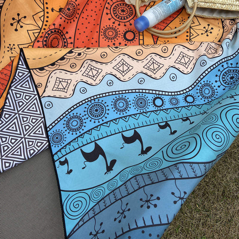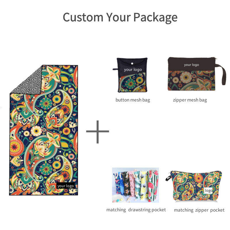 Toalla de playa de microfibra de ante de gofres de secado rápido de alta calidad personalizada bolsa sin arena reciclada impresa de doble cara hecha de algodón suave