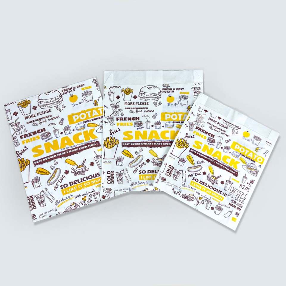 Bolsas de Papel para Envasado de Alimentos, Personalizadas, de Alta Calidad, Reciclables, Resistentes a la Grasa, Aptas para Alimentos, para Hamburguesas y Papas Fritas