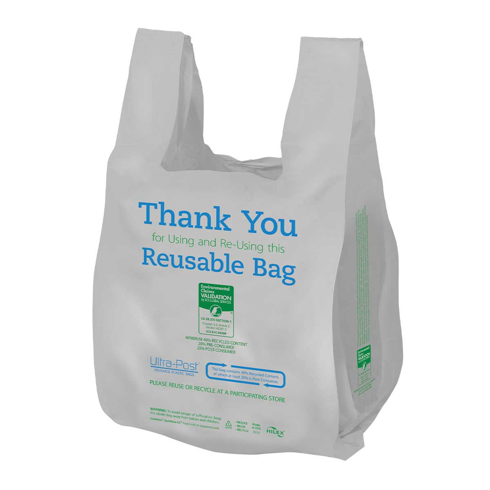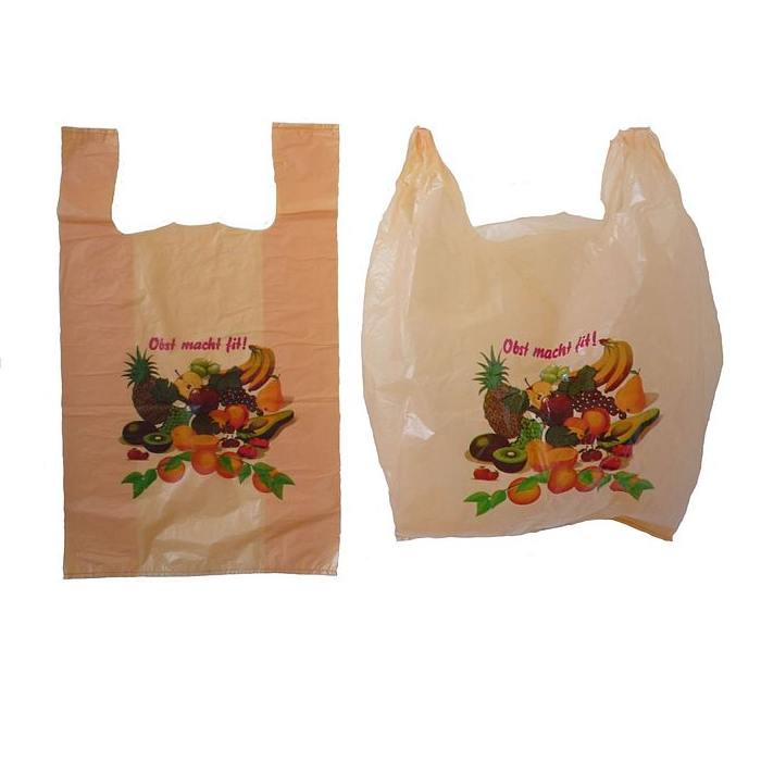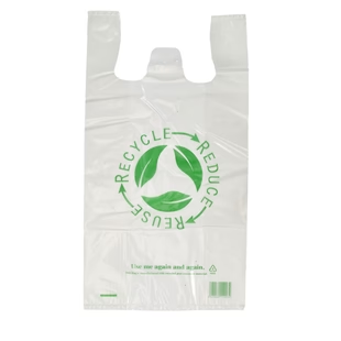 Camisetas recicladas personalizadas de alta calidad, bolsas de compras de plástico transparente con asas para envasar alimentos y verduras con logotipo