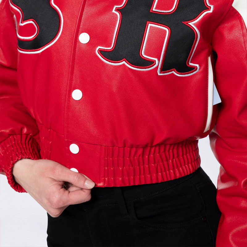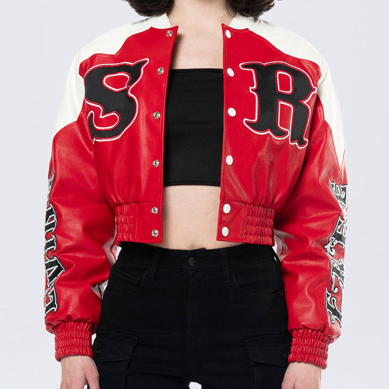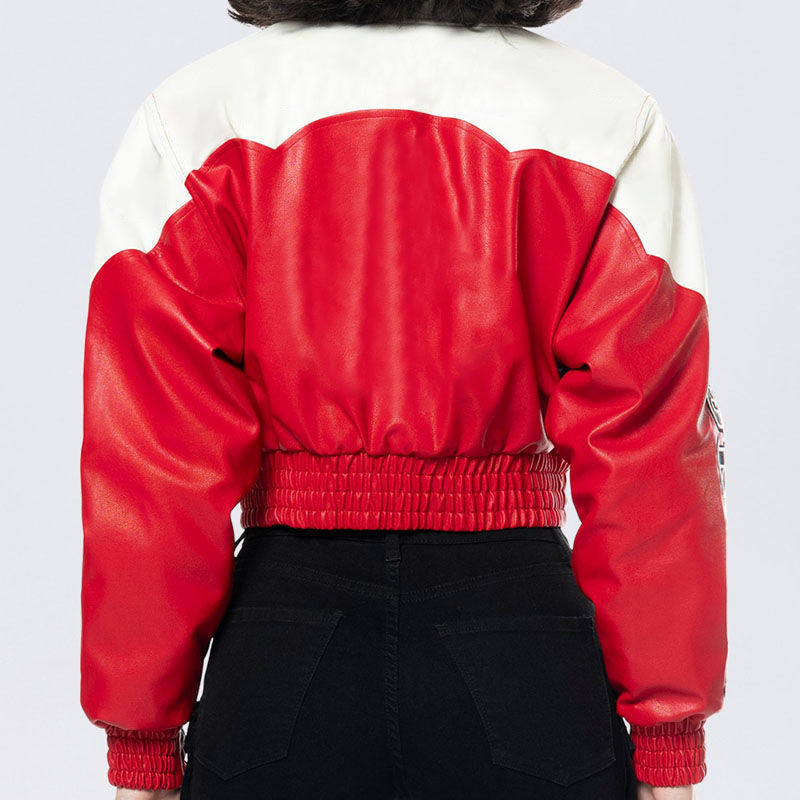 Chaqueta de Cuero Genuino Rojo de Alta Calidad Personalizada para Mujer, Chaqueta de Motociclismo Corta con Parche Bordado