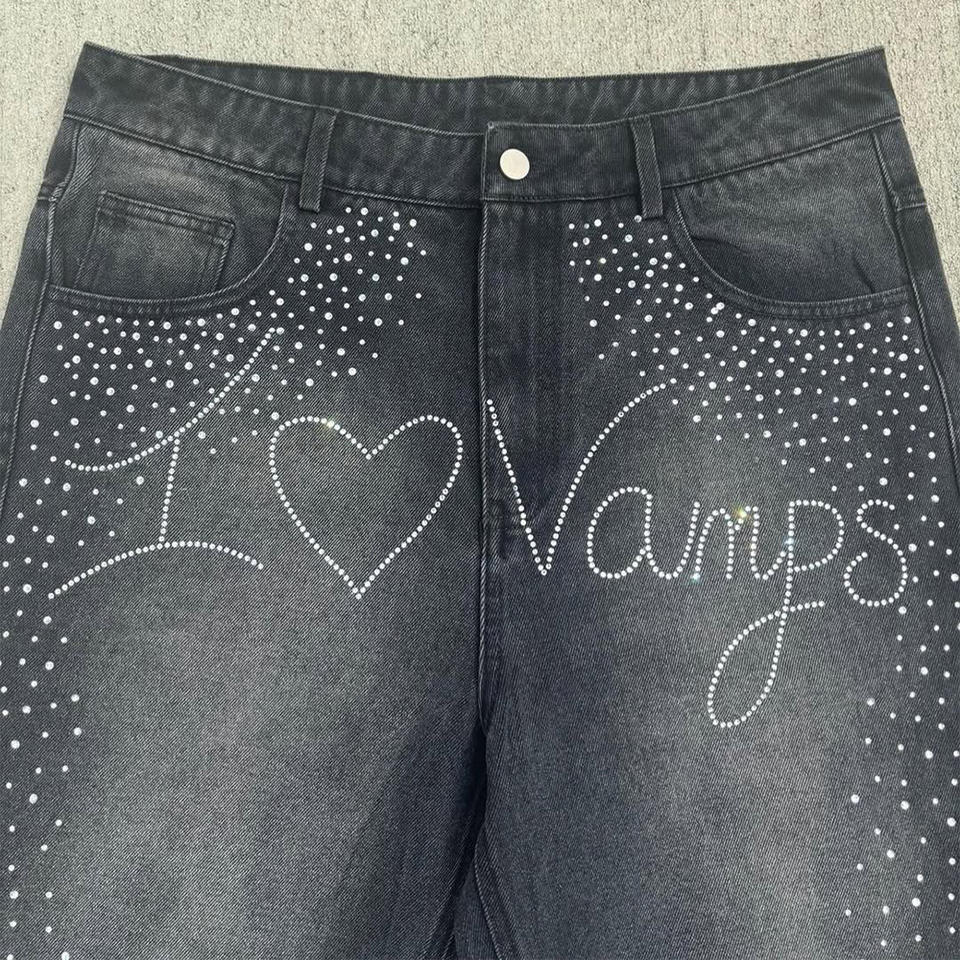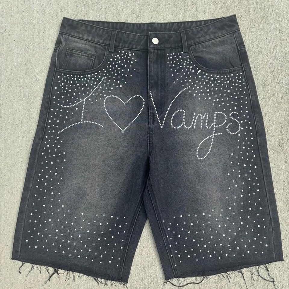 Pantalones cortos vaqueros desgastados con logotipo de diamantes de imitación de alta calidad personalizados para hombre Pantalones cortos vaqueros Vintage con diamantes de imitación