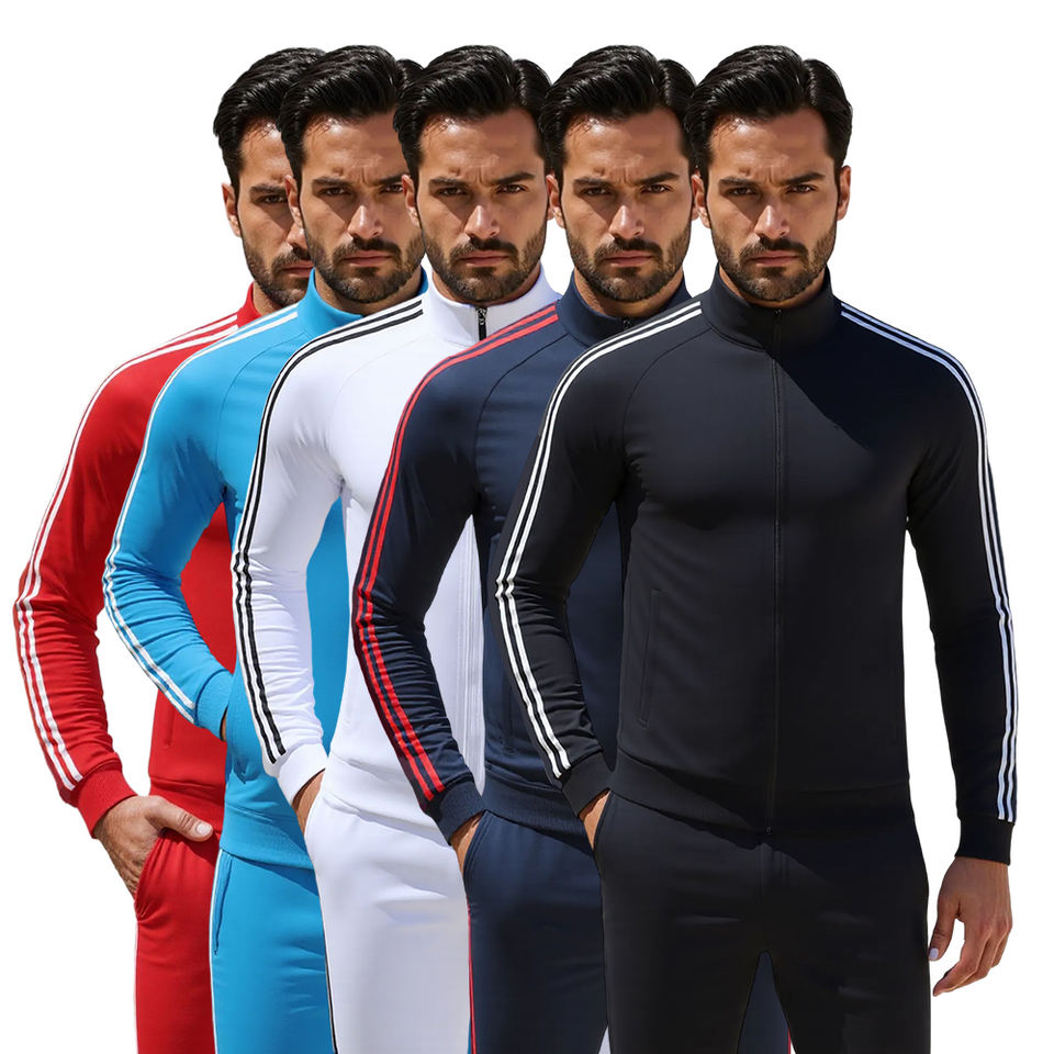 Conjunto de ropa deportiva personalizada de alta calidad Slim Fit Running Gym Poliéster Chaqueta de manga larga Pantalones de chándal en blanco