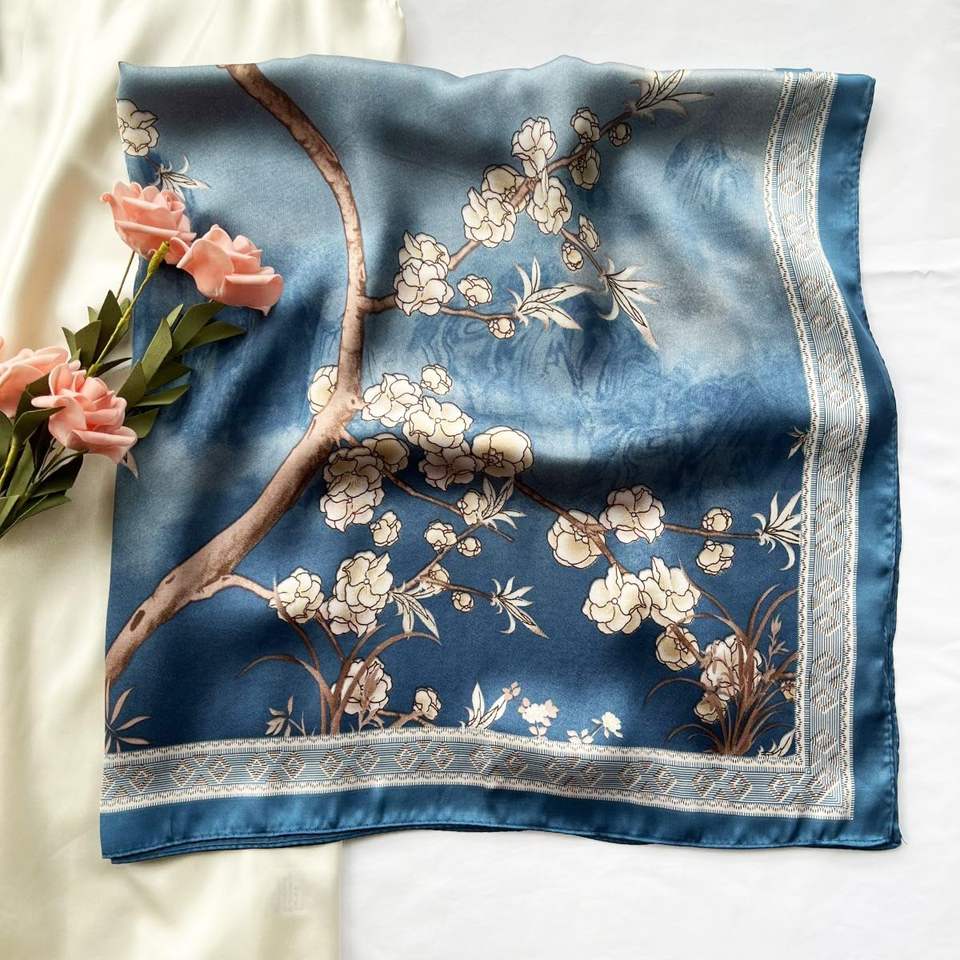 Pañuelos de seda personalizados de alta calidad para mujer, de poliéster satinado, estampados, grandes, para eventos, primavera, verano, otoño.
