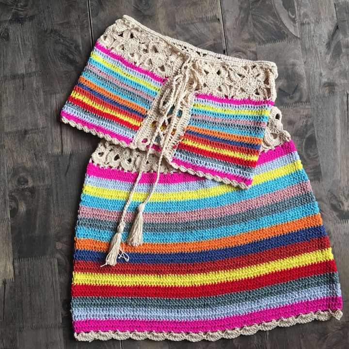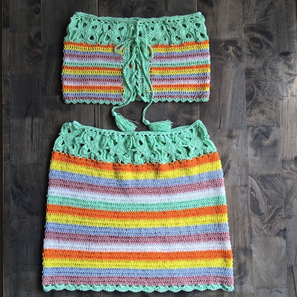 Traje de Baño de Dos Piezas Hecho a Mano con Crochet, Bikini sin Tirantes de Alta Calidad Personalizado, Ropa de Playa Tejida para Mujer