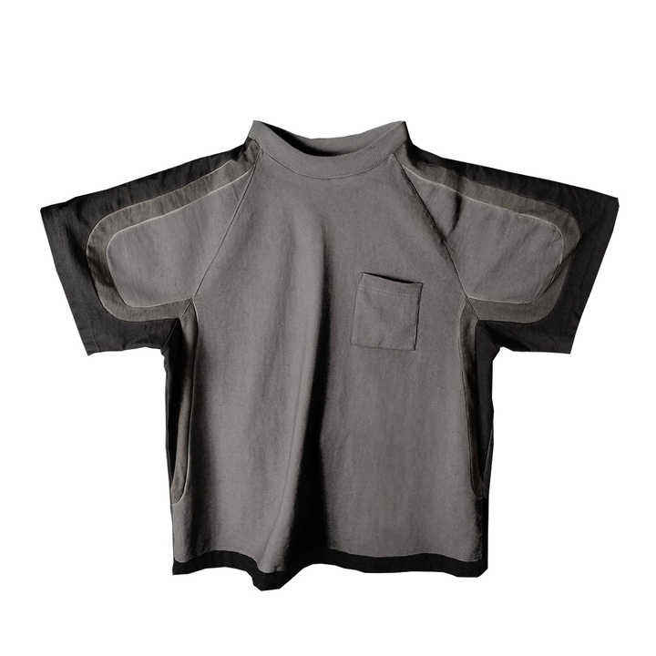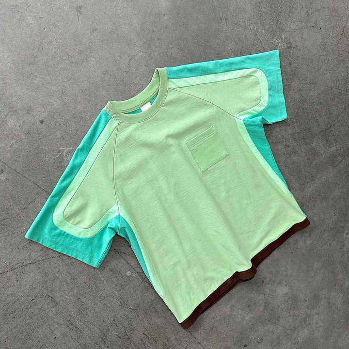 Camiseta personalizada de alta calidad, diseño de tela en contraste, 100% camisetas de algodón con bolsillo para hombre acanalado