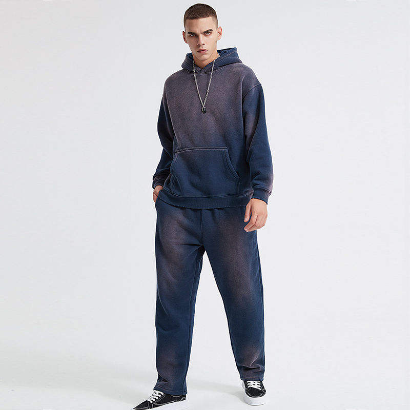 Ropa de invierno personalizada de alta calidad más vendida, lavado ácido, 100% algodón, nueva ropa de moda, chándal de lavado ácido de Color sólido para hombres