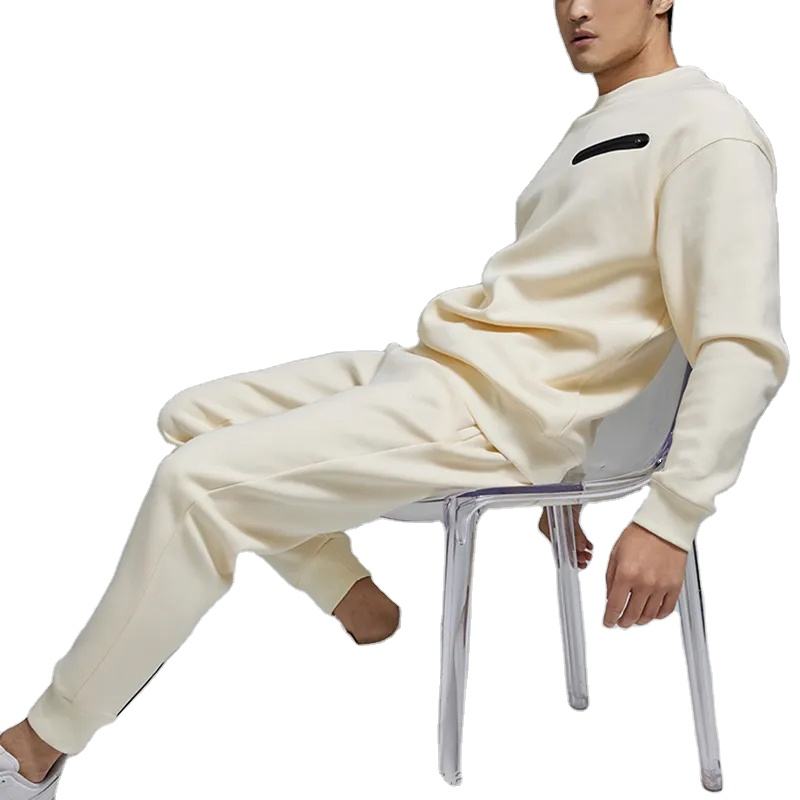 Chándal personalizado de alta calidad, sudadera de cuello redondo, conjunto de 2 piezas con bolsillo frontal, ropa de entrenamiento deportivo, chándal liso para hombre