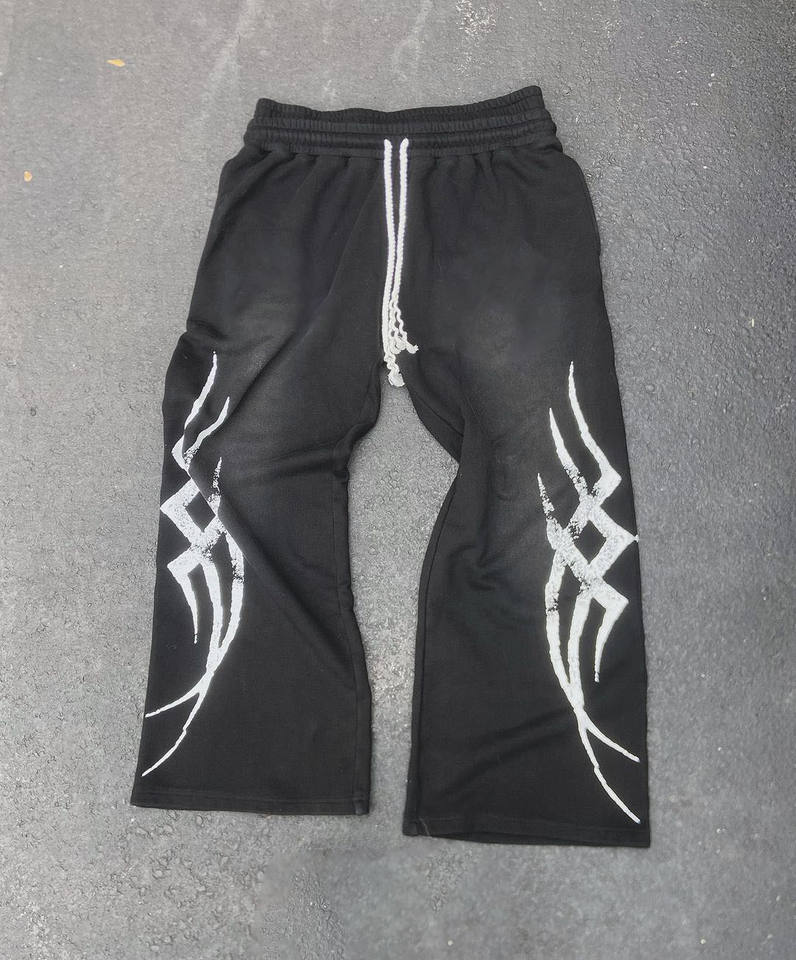 Pantalones de chándal acampanados vintage de alta calidad personalizados, pantalones de chándal holgados acampanados con estampado de lavado ácido para hombres