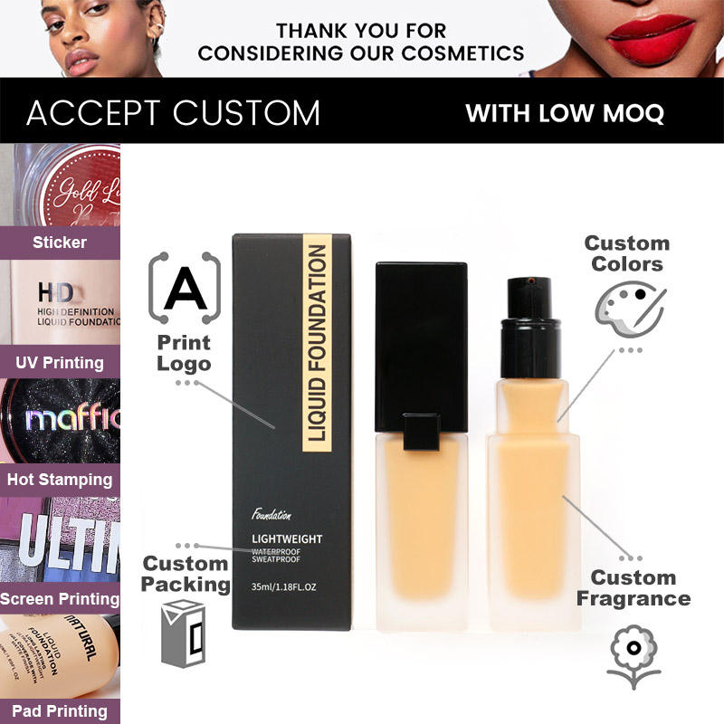 Maquillaje de mezcla de larga duración resistente al agua de alta calidad personalizado cobertura completa me ajuste acabado mate base líquida