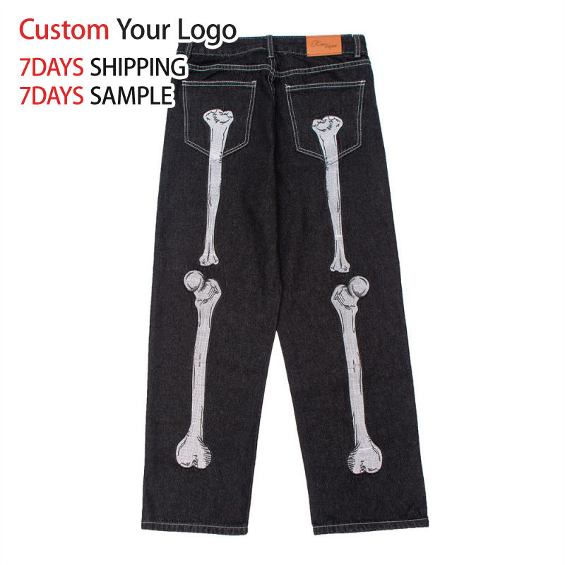 Jeans de Mezclilla Anchos Y2K de Alta Calidad Personalizados, Estilo Hip Hop, Casual, Urbano, Vintage, de Diseñador, Corte Recto, Holgados, para Hombre, Lavados