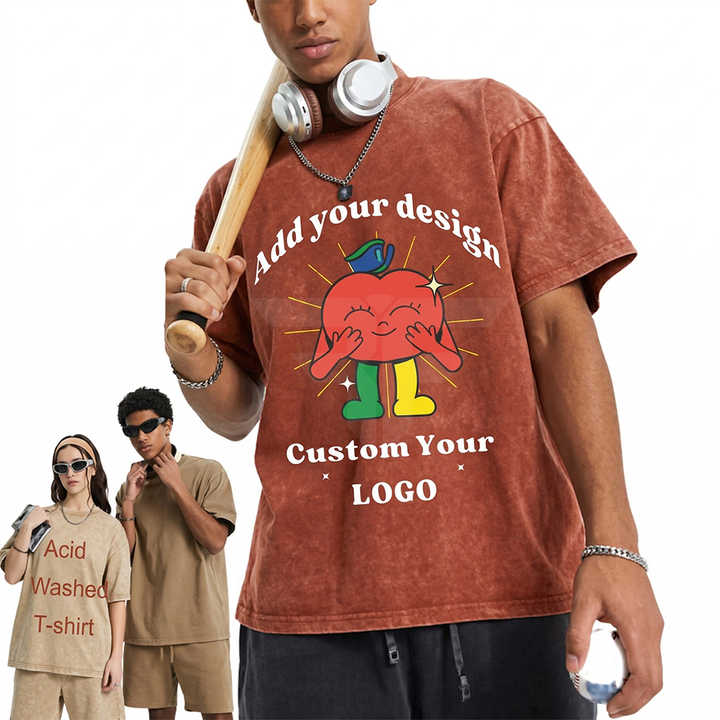 Camiseta de Hombre Personalizada de Gran Cantidad, Lavada al Ácido, Estilo Vintage, Oversize, Tejida, 100% Algodón, para Ropa Urbana, con Impresión de Logotipo DTG en Blanco