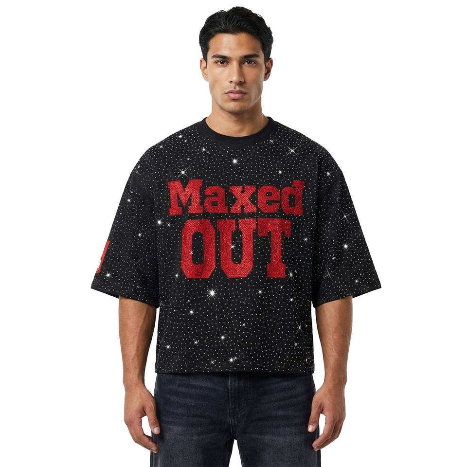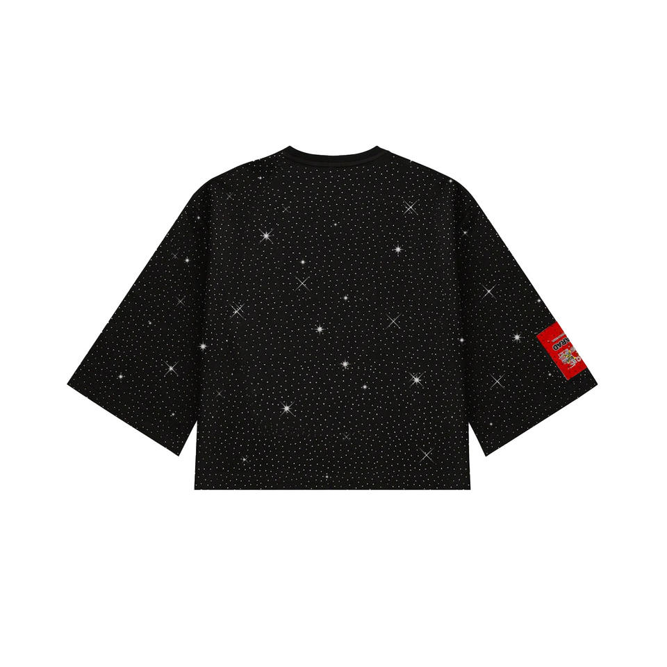 Camiseta personalizada de estilo urbano con pedrería para hombre, corte holgado, algodón grueso, logotipo de cristal en 3D, camiseta gráfica extragrande para hombre