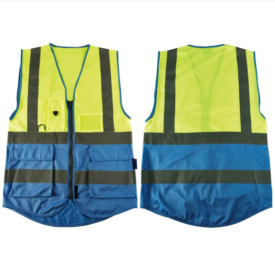 Custom High Visibility Reflective Safety Vest Men Polyester Material Mesh Featuring Logo Pockets Construction Security Workwear