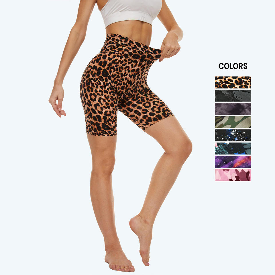 Leggings de cintura alta personalizados, diseño de cintura cruzada, ajustados, con control de barriga, transpirables, informales, para deportes/entrenamiento, estampado de leopardo