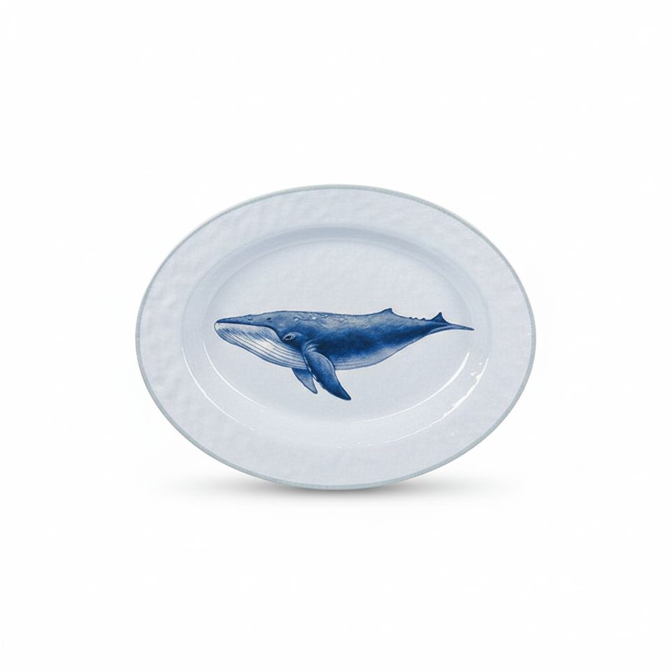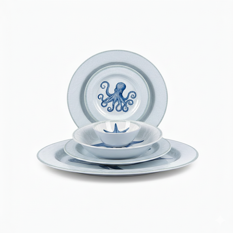 Vajilla de Melamina A5 Personalizada de Alta Calidad con Diseño de Ballena y Concha Marina Azul, Platos y Tazones Redondos Personalizados, Duraderos, Seguros para Alimentos