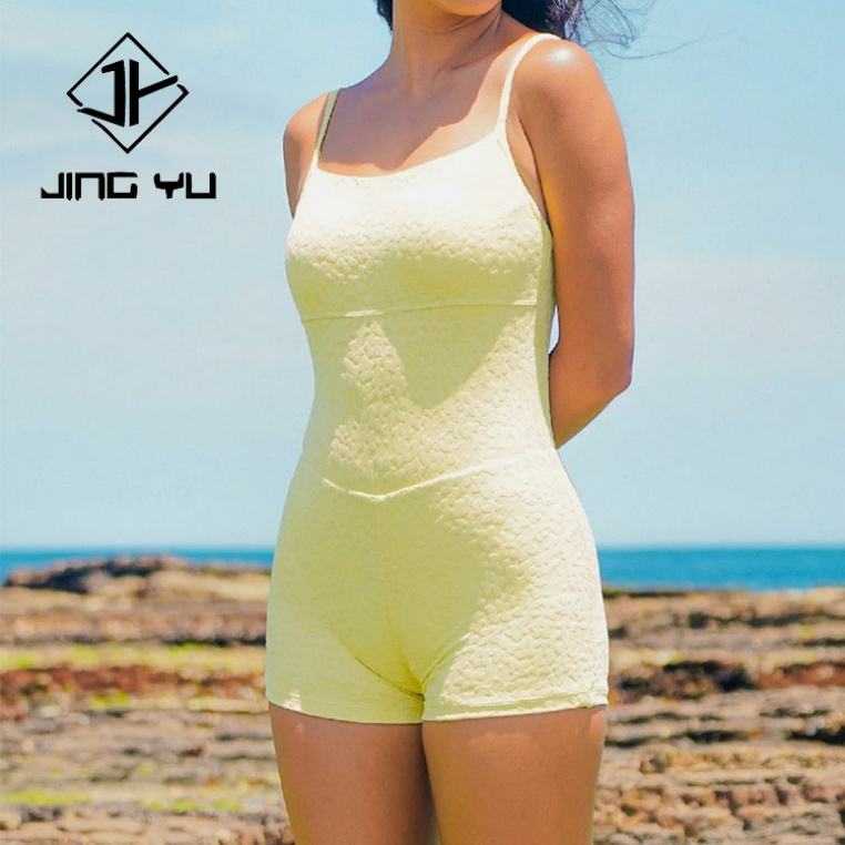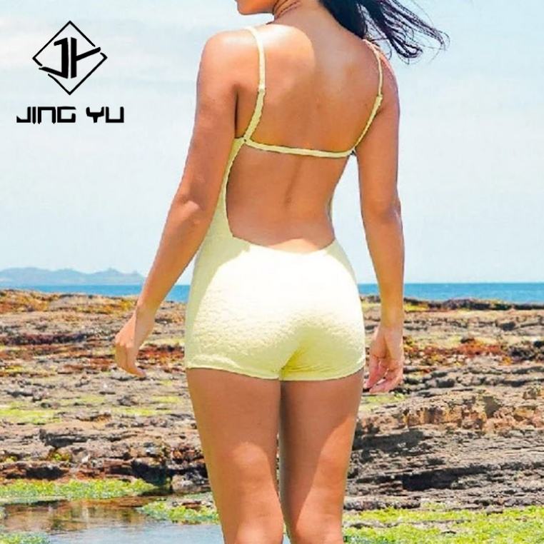 Mono de Alta Calidad Personalizado con Cuello Cuadrado y Espalda Descubierta, Mono Corto sin Tirantes de Nailon Reciclado OEM