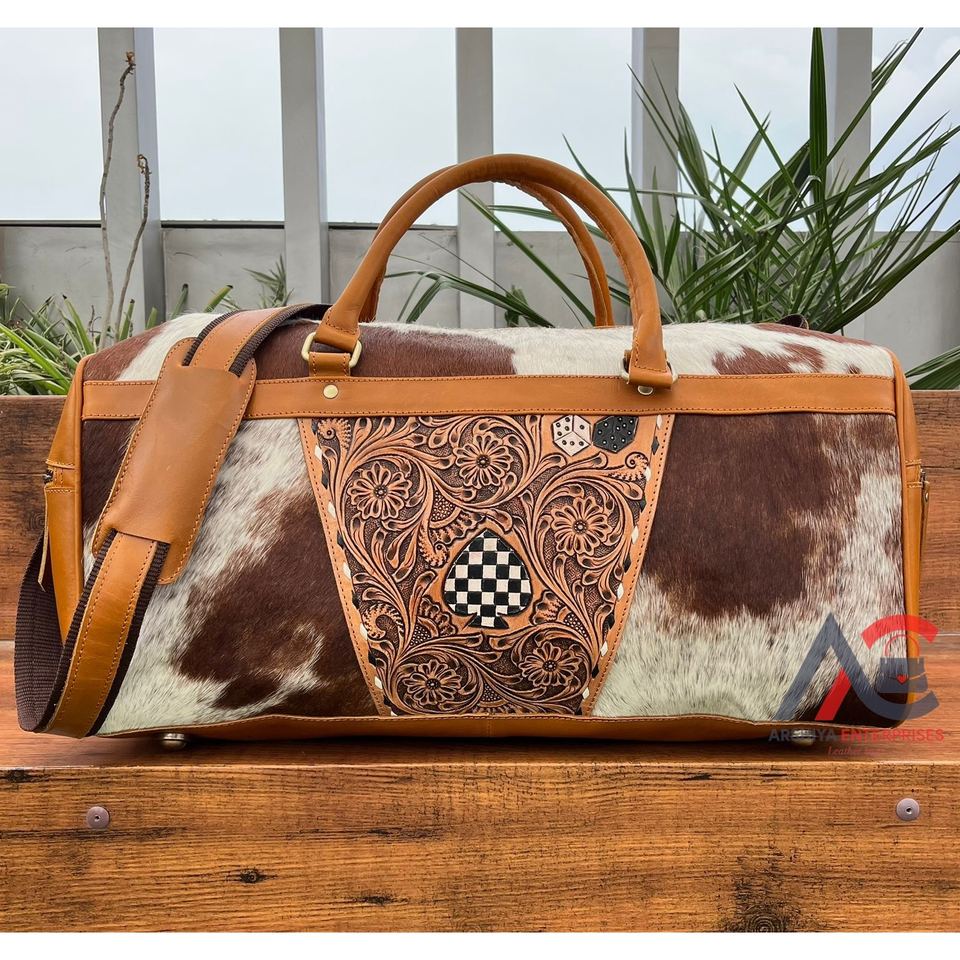 Product name:Hand Tooled Checkerd Leather Duffel Bag